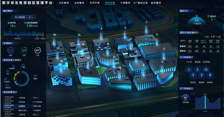 園區(qū)安防、設(shè)施、車輛、能耗等重要管理模塊被納入到數(shù)字孿生智慧園區(qū)管理平臺(tái)中,實(shí)現(xiàn)“一個(gè)平臺(tái)”就能了解園區(qū)態(tài)勢,有效提升園區(qū)監(jiān)控和管理水平。